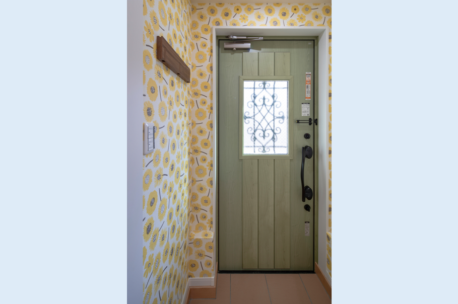 明るい壁紙の玄関は外出・帰宅の際気持ちをポジティブにしてくれそうで素敵ですね。お部屋ごとに壁紙を変えることでお部屋の印象もがらりと変わり、好みの空間を演出できます。