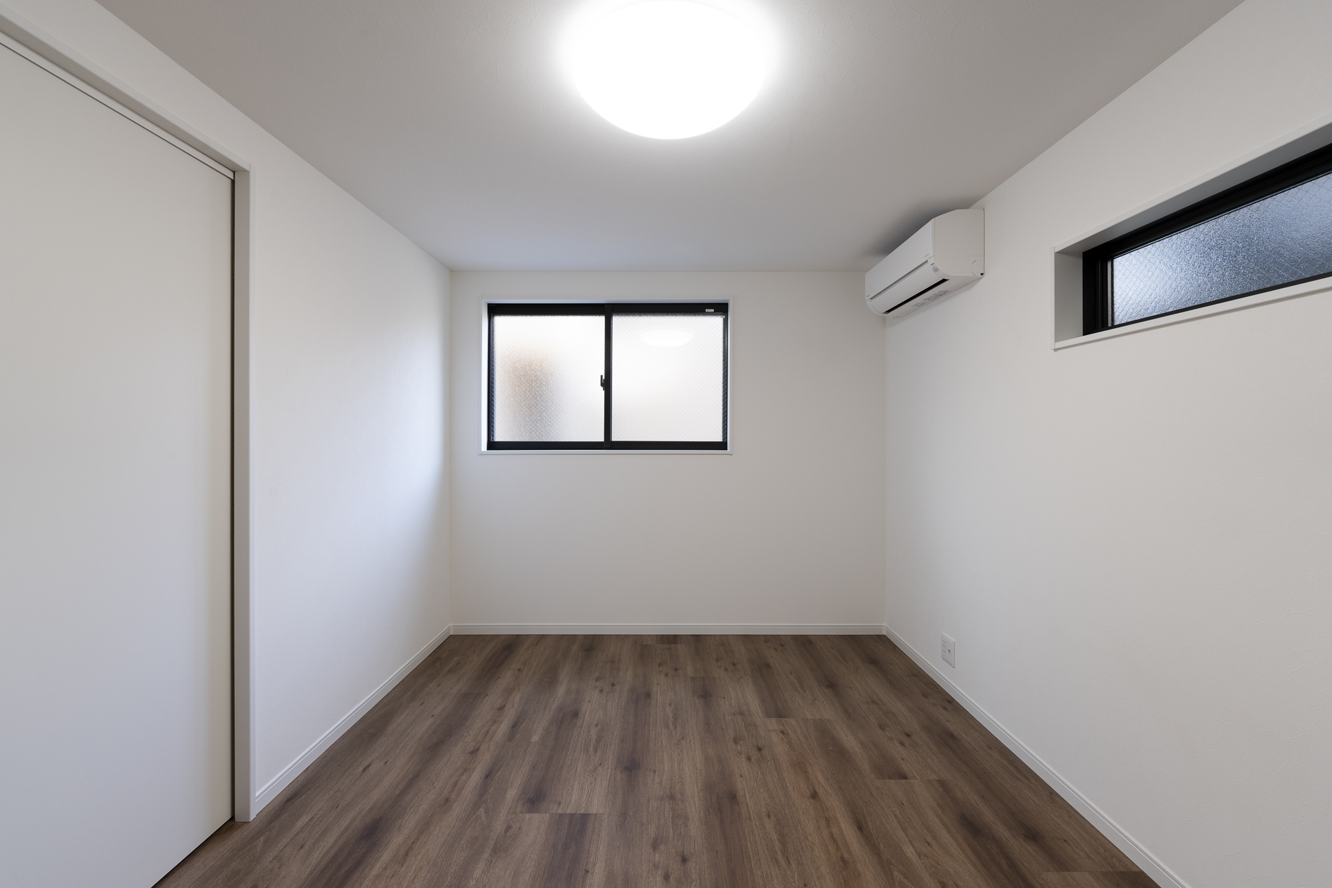 洋室はお部屋によって床材や建具の色を変えて施工しています。お部屋の用途や目的、好みに応じて床材や建具を変えることで快適度も上がりますし、各部屋に合わせたコーディネートを楽しむこともできます。